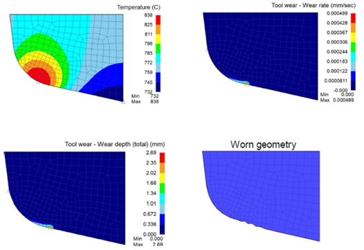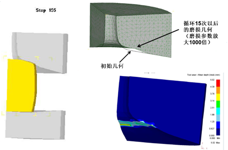 图中模具几何根据磨损情况的更新也是一大亮点,软件根据Archard磨损准则,对磨损率进行平滑处理,以提供更规则的几何形状更新。
