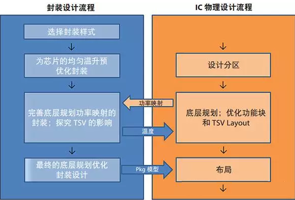 设计三维叠层集成电路(3DIC)时,芯片封装协同设计就显得必不可少。由于芯片的电能和热能之间存在相互作用,因而不能独立地设计芯片。通过作为芯片间互连的硅过孔(TSV)(虽然它们的主要作用是减少热点),有助于从芯片叠层中导出热量,因此,它们在芯片上相对于大功率区域的布局,会较大程度地影响整体热性能。热传递是高度的三维现象,因此,封装温度的分布会影响芯片上的温度分布。