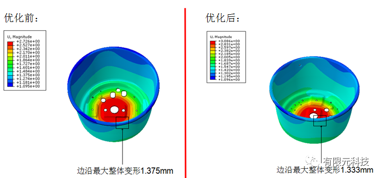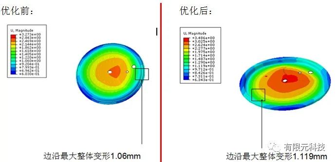 结构优化后,在正常压力下锁扣的变形量降低很明显,但盖板边沿变形量大了一些,需继续优化设计避免风险。