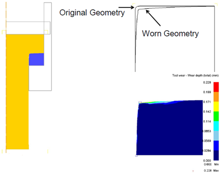 图中模具几何根据磨损情况的更新也是一大亮点,软件根据Archard磨损准则,对磨损率进行平滑处理,以提供更规则的几何形状更新。