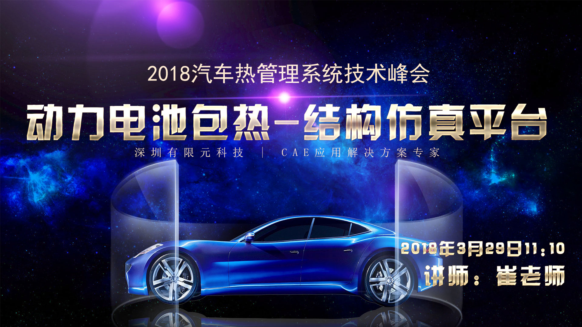 本次峰会旨在介绍新能源汽车热管理系统的最新技术发展,比亚迪、沃特玛、同济大学、华晨、吉利等众多行业内重量级机构进行技术分享,有限元科技高级产品经理崔老师将在演讲中介绍CAE仿真对汽车热管理系统技术升级起到的巨大推动作用,将有限元科技在动力电池方面热仿真案例、结构仿真案例及散热整体解决方案做了详细的分享,欢迎相关领域专业人士前来交流探讨。