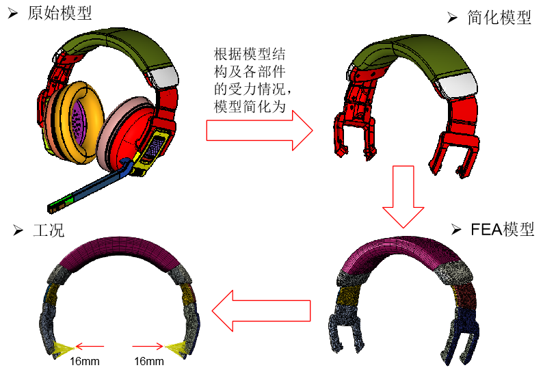 头戴式蓝牙耳机是块头最大的蓝牙耳机,能够容纳尺寸更大的单元、更多的电路、更大的电池等,这类耳机普遍音质不错,甚至有个别耳机还支持降噪功能。如果你想买到功能最齐全的蓝牙耳机,头戴式蓝牙耳机肯定是你最佳的选择。头戴式蓝牙耳机的结构强度也是用户关注的问题,元王通过有限元仿真分析某头戴式无线蓝牙耳机的结构强度,对产品设计模型进行了验证,并为产品进一步优化设计提供理论依据。
