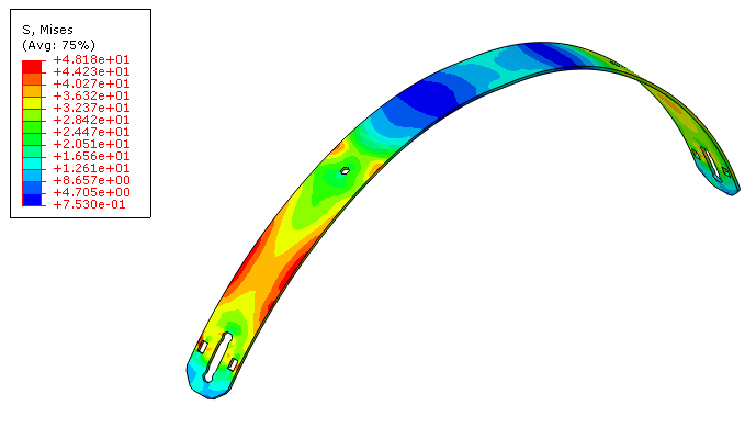 头部支撑弹片最大等效应力为48.18Mpa,低于材料屈服强度1034Mpa。